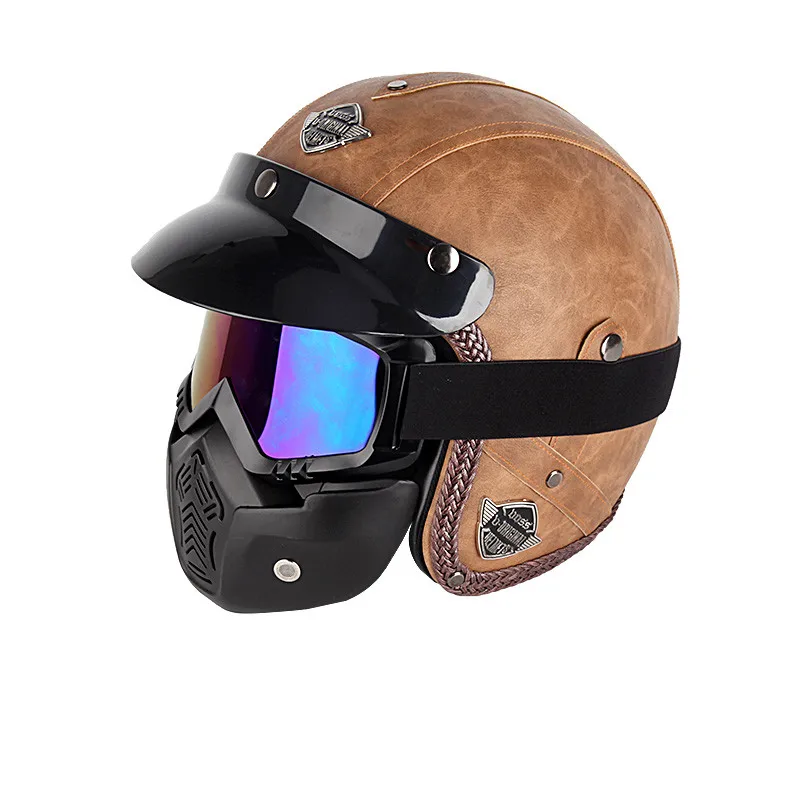 Their use is required by law in many countries. However, some have complained that it is not aerodynamic, and actually quite bulky. Meanwhile, the genuine leather interior makes the helmet extra comfortable. The benefit of vintage motorcycle helmet hanmei leather motorcycle helmet: Pu leather helmets 3 4 motorcycle chopper bike helmet open face vintage motorcycle helmet with goggle mask 2018 new.